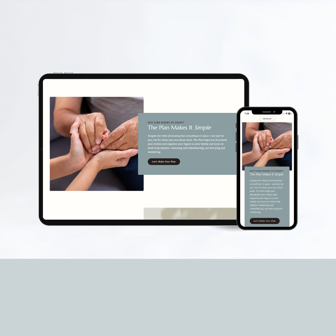 The website feels calm, approachable, and reassuring—inviting visitors to explore how thoughtful planning can ease difficult conversations, reduce future stress, and turn preparation into an act of love and care for their family.